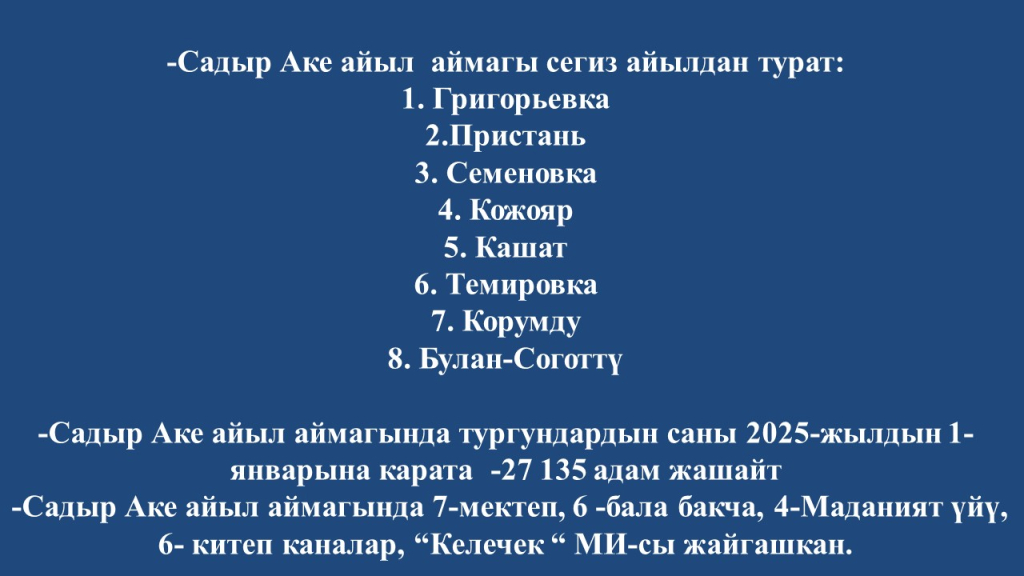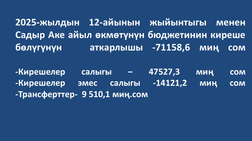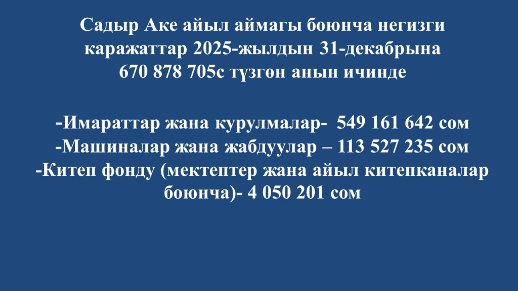 Садыр Аке айыл аймагынын 2025-жылдын бюджетинин аткарылышы боюнча маалымат
